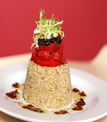 read more...QUINOA WITH PIQUILLO PEPPERS, CURED OLIVES AND FRISEE